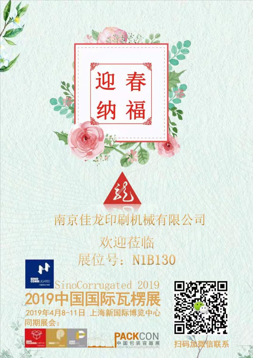 2019中國國際瓦楞展!南京佳龍印刷機械有限公司攜最新全自動翻轉(zhuǎn)機參展,展位號N1B130。歡迎各位新老顧客蒞臨指導(dǎo)!